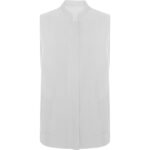 Bata de Amangada Emakumeak. Itxiera zentrala ezkutuko botoi automatikoekin. · Lateral Costadillos eta bularreko pinzak. Aurreko bi adabaki poltsiko.