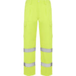 Pantalón largo de alta visibilidad con tejido resistente.· Cinturilla ajustable elástica en la parte trasera.· Dos bolsillos frontales. · Dos bolsillos traseros con tapeta y cierre de velcro. · Dos bolsillos laterales con fuelle y tapeta con cierre de velcro. · Dos cintas reflectantes horizontales.