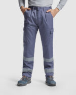 Pantalón largo de visibilidad aumentada con tejido resistente. · Cinturilla ajustable elástica en la parte trasera.· Dos bolsillos frontales.· Bolsillo funcional trasero con tapeta y cierre de velcro. · Dos bolsillos laterales con tapeta y cierre de velcro. · Refuerzo en entrepierna· Doble tejido en rodilleras. Bi zinta islatzaile horizontal.