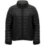 Chaqueta de mujer acolchada con relleno tacto pluma. ·Cremalleras invertidas a tono con protector de barbilla y tirador. ·Dos bolsillos frontales con cremalleras. ·Ribete elástico a tono en puños y bajo. ·Forro interior a contraste. ·Prenda ligera y plegable.