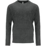 Sudadera de manga larga estilo ranglán. Parte posterior del cuello y parte inferior de los puños en canalé 1×1. Bolsillo canguro con terminación sin costuras. Costuras laterales diagonales hacia parte frontal.