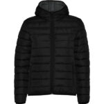 Chaqueta de mujer acolchada con relleno tacto pluma y capucha.·Cremallera invertida a tono con protector de barbilla. ·Dos bolsillos laterales con cremalleras. ·Ribete elástico a tono en puños, bajos y apertura de capucha. ·Forro interior a contraste. ·Prenda ligera y plegable. · Corte de entalado.