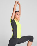 Camiseta técnica combinada con dos tejidos de poliéster, manga corta de estilo ranglán. Tejido principal bird’s eye y paneles laterales e interior de la manga con tejido microperforado. Cuello redondo con cubrecosturas de refuerzo en su interior. Camiseta de tejido confortable y fácilmente adaptable al cuerpo.