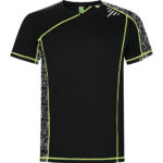 Camiseta técnica de manga raglán con paneles sublimados. Poliéster Reciclado CONTROL DRY. Remallado en flúor (excepto color blanco 183). Detalles reflectantes y faldón trasero. Etiqueta identificativa logo ECO en manga.