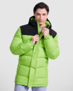 Chaqueta acolchada combinada con capucha fija.· Cremallera frontal cubierta con una tapeta.· Protector de barbilla. · Dos bolsillos laterales con cremallera.· Puños elásticos.· Acceso interno para reprocesos en espalda y pecho izquierdo.