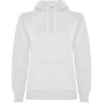 Sudadera entallada de corte femenino con capucha bicolor de doble tejido, con cordón contrastado ajustable, cubrecosturas en el cuello y bolsillo canguro. Punto canalé con elastano 1×1 Ukabila eta gerrian. Detalle thumb slit puños con apertura para el pulgar.