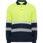 Polo técnico de alta visibilidad en manga larga.· Cuello y puño en punto canalé 1×1. · Dos cintas reflectantes segmentadas en torso y manga. · Tapeta 3 botones a contraste.· Tejido anti enganches y fácil secado.